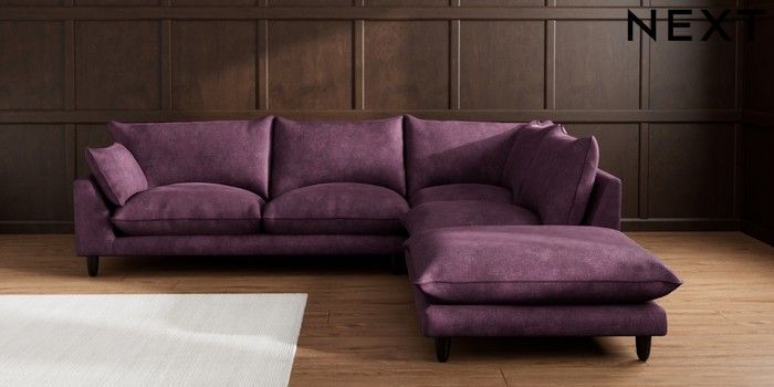 7.3.1 Buy Noa Deep Relaxed Sit Large Open End Corner Chaise - Right Hand Plush Chenille Dark Plum Purple High Leg - Dark from the Seasons online shop Click here to use our website with more accessibility support, for example screen readers