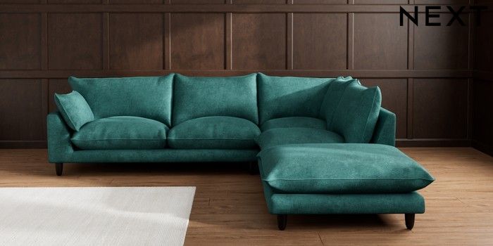 7.3.1 Buy Noa Deep Relaxed Sit Large Open End Corner Chaise - Right Hand Plush Chenille Dark Teal Green High Leg - Dark from the Seasons online shop Click here to use our website with more accessibility support, for example screen readers