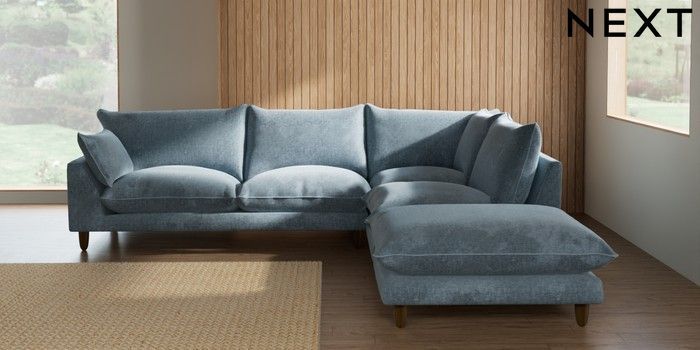 7.2.10 Buy Noa Deep Relaxed Sit Large Open End Corner Chaise - Right Hand Plush Chenille Light Blue High Leg - Mid from the Seasons online shop Click here to use our website with more accessibility support, for example screen readers