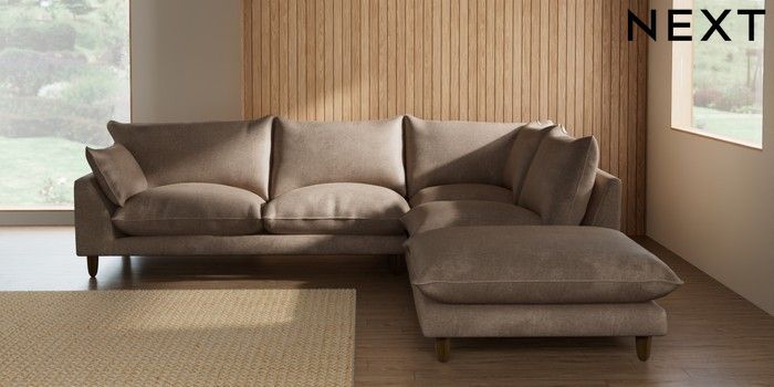 7.3.1 Buy Noa Deep Relaxed Sit Large Open End Corner Chaise - Right Hand Plush Chenille Mid Natural High Leg - Mid from the Seasons online shop Click here to use our website with more accessibility support, for example screen readers