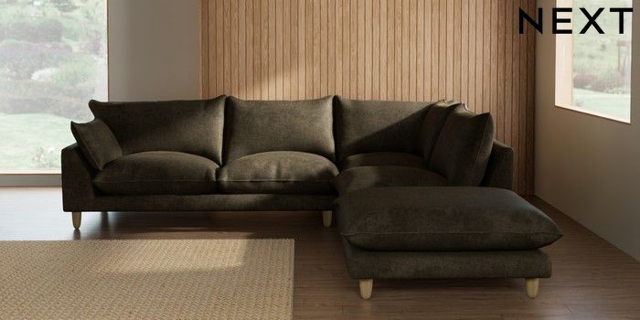 7.2.10 Buy Noa Deep Relaxed Sit Large Open End Corner Chaise - Right Hand Plush Chenille Moss Green High Leg - Light from the Seasons online shop Click here to use our website with more accessibility support, for example screen readers