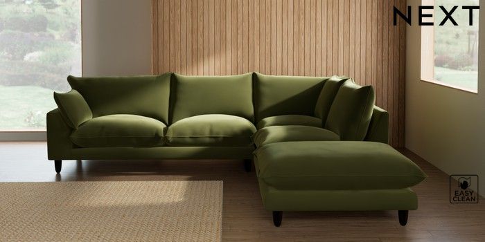 7.3.1 Buy Noa Deep Relaxed Sit Large Open End Corner Chaise - Right Hand Plush Velvet Easy Clean Mid Olive Green High Leg - Dark from the Seasons online shop Click here to use our website with more accessibility support, for example screen readers