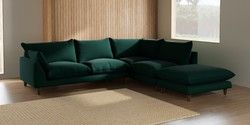 7.3.1 Buy Noa Deep Relaxed Sit Large Open End Corner Chaise - Right Hand Plush Velvet with Contrast Bottle Green with Navy Blue High Leg - Mid from the Seasons online shop