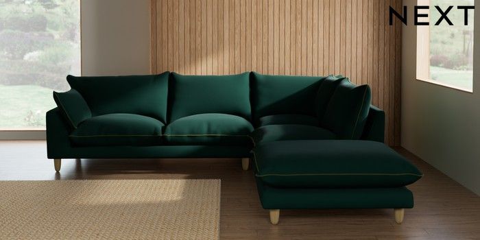 7.3.1 Buy Noa Deep Relaxed Sit Large Open End Corner Chaise - Right Hand Plush Velvet with Contrast Bottle Grn with Mid Olive Grn High Leg - Light from the Seasons online shop Click here to use our website with more accessibility support, for example screen readers