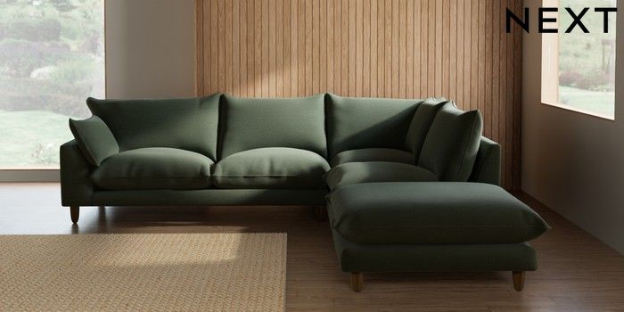 7.3.1 Buy Noa Deep Relaxed Sit Large Open End Corner Chaise - Right Hand Relaxed Linen Look Dark Green High Leg - Mid from the Seasons online shop Click here to use our website with more accessibility support, for example screen readers