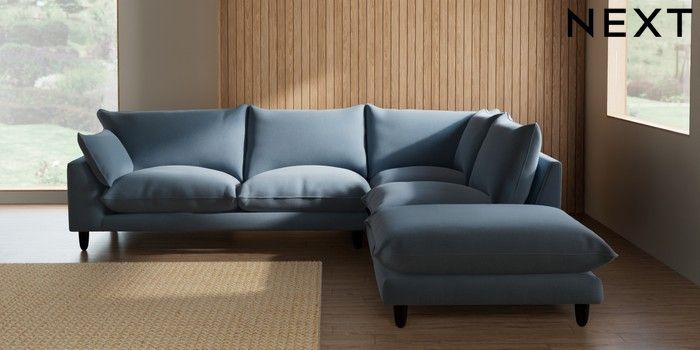 7.3.1 Buy Noa Deep Relaxed Sit Large Open End Corner Chaise - Right Hand Relaxed Linen Look Mid Blue High Leg - Dark from the Seasons online shop Click here to use our website with more accessibility support, for example screen readers
