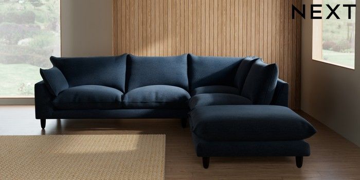 7.3.1 Buy Noa Deep Relaxed Sit Large Open End Corner Chaise - Right Hand Ripple Chenille Dark Blue High Leg - Dark from the Seasons online shop Click here to use our website with more accessibility support, for example screen readers