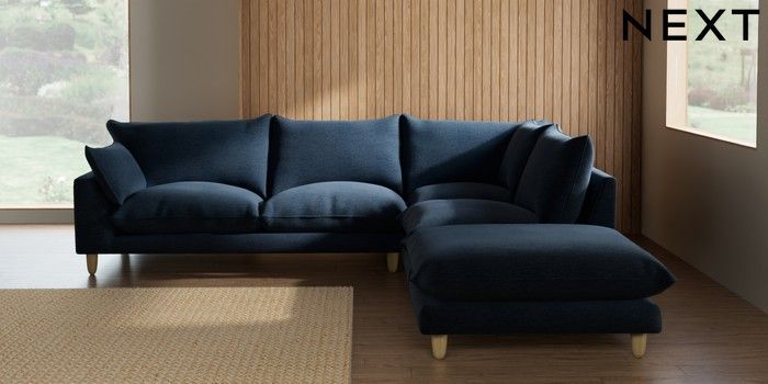7.2.10 Buy Noa Deep Relaxed Sit Large Open End Corner Chaise - Right Hand Ripple Chenille Dark Blue High Leg - Light from the Seasons online shop Click here to use our website with more accessibility support, for example screen readers
