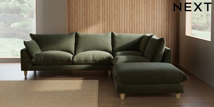 7.3.1 Buy Noa Deep Relaxed Sit Large Open End Corner Chaise - Right Hand Ripple Chenille Mid Moss Green High Leg - Light from the Seasons online shop Click here to use our website with more accessibility support, for example screen readers