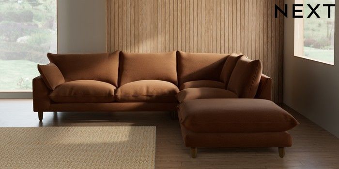 7.2.10 Buy Noa Deep Relaxed Sit Large Open End Corner Chaise - Right Hand Ripple Chenille Mid Rust Brown High Leg - Mid from the Seasons online shop Click here to use our website with more accessibility support, for example screen readers