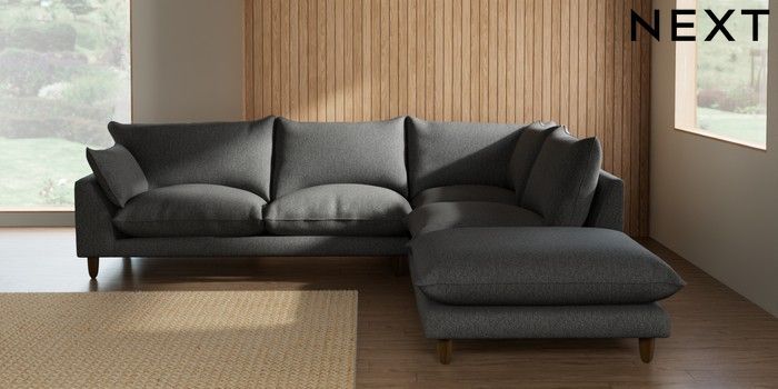 7.3.1 Buy Noa Deep Relaxed Sit Large Open End Corner Chaise - Right Hand Tweedy Chenille Dark Grey High Leg - Mid from the Seasons online shop Click here to use our website with more accessibility support, for example screen readers