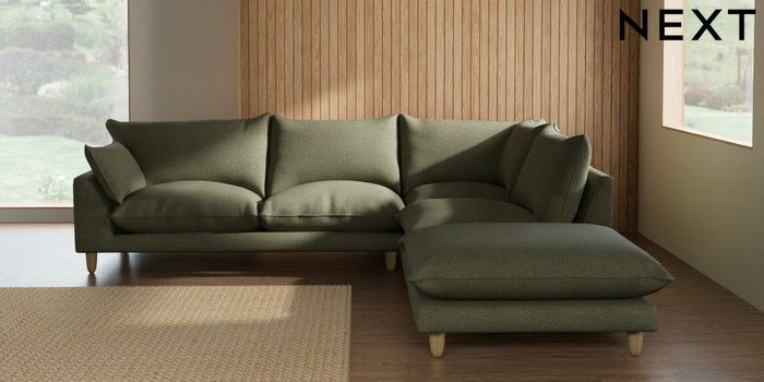 7.3.1 Buy Noa Deep Relaxed Sit Large Open End Corner Chaise - Right Hand Tweedy Chenille Mid Moss Green High Leg - Light from the Seasons online shop Click here to use our website with more accessibility support, for example screen readers