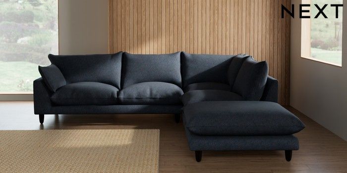 7.3.1 Buy Noa Deep Relaxed Sit Large Open End Corner Chaise - Right Hand Tweedy Chenille Navy Blue High Leg - Dark from the Seasons online shop Click here to use our website with more accessibility support, for example screen readers