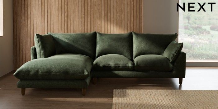 7.2.10 Buy Noa Deep Relaxed Sit Medium Corner Chaise - Left Hand Boucle Chenille Dark Moss Green High Leg - Mid from the Seasons online shop Click here to use our website with more accessibility support, for example screen readers