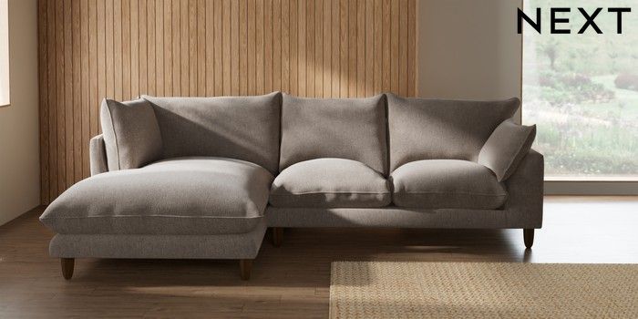 7.2.10 Buy Noa Deep Relaxed Sit Medium Corner Chaise - Left Hand Chunky Chenille Light Dove High Leg - Dark from the Seasons online shop Click here to use our website with more accessibility support, for example screen readers