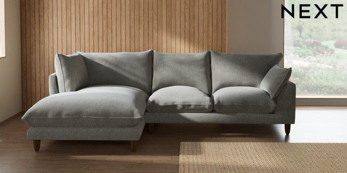 7.2.10 Buy Noa Deep Relaxed Sit Medium Corner Chaise - Left Hand Chunky Chenille Light Grey High Leg - Dark from the Seasons online shop Click here to use our website with more accessibility support, for example screen readers
