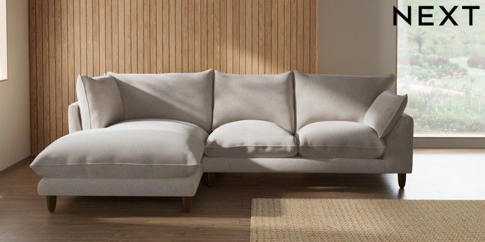 7.2.10 Buy Noa Deep Relaxed Sit Medium Corner Chaise - Left Hand Chunky Chenille Oyster High Leg - Light from the Seasons online shop Click here to use our website with more accessibility support, for example screen readers