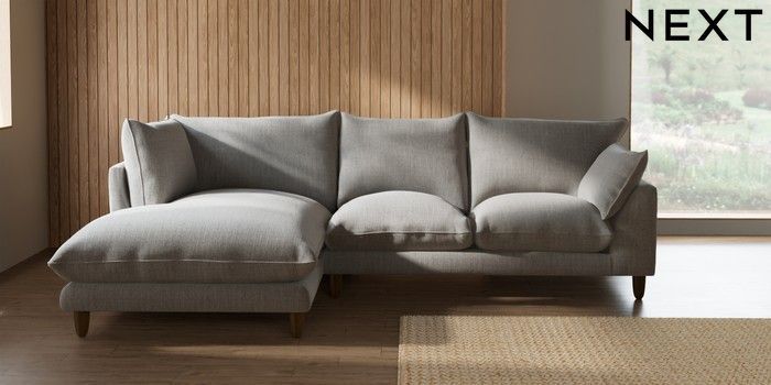 7.2.10 Buy Noa Deep Relaxed Sit Medium Corner Chaise - Left Hand Chunky Weave Dove Grey High Leg - Light from the Seasons online shop Click here to use our website with more accessibility support, for example screen readers