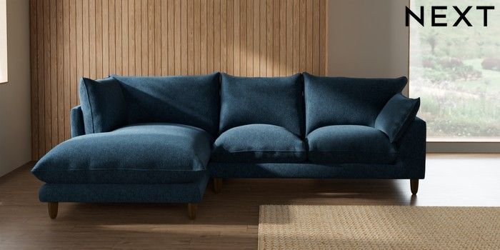 7.2.10 Buy Noa Deep Relaxed Sit Medium Corner Chaise - Left Hand Cotswold Chenille Dark Blue High Leg - Mid from the Seasons online shop Click here to use our website with more accessibility support, for example screen readers
