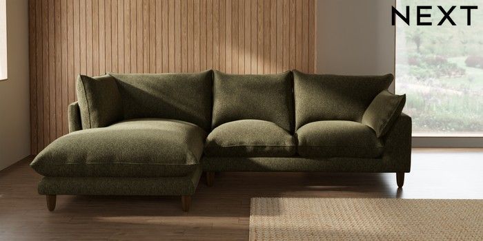7.2.10 Buy Noa Deep Relaxed Sit Medium Corner Chaise - Left Hand Cotswold Chenille Dark Green High Leg - Mid from the Seasons online shop Click here to use our website with more accessibility support, for example screen readers