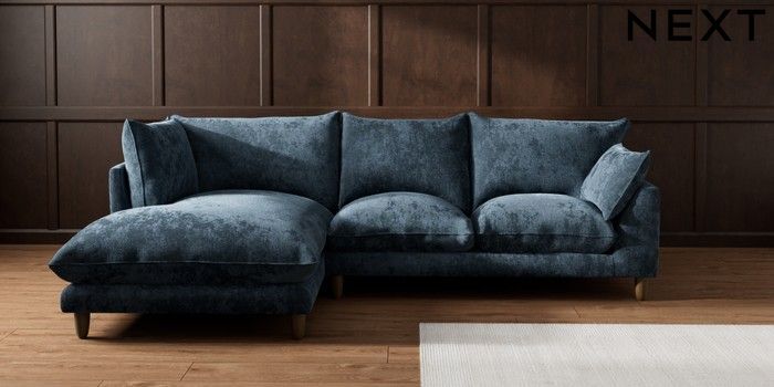 7.2.10 Buy Noa Deep Relaxed Sit Medium Corner Chaise - Left Hand Distressed Velour Midnight Blue High Leg - Light from the Seasons online shop Click here to use our website with more accessibility support, for example screen readers