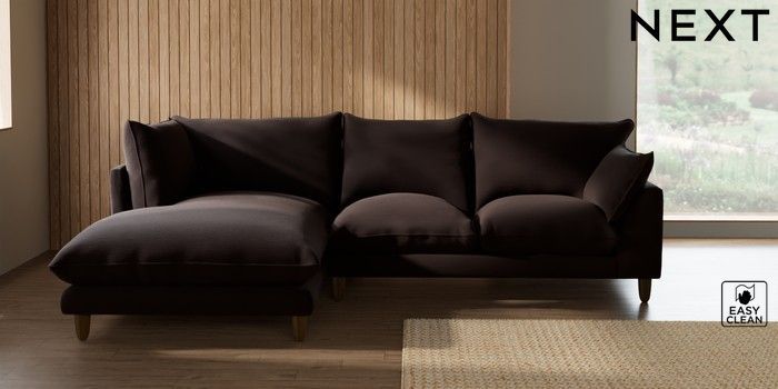 7.2.10 Buy Noa Deep Relaxed Sit Medium Corner Chaise - Left Hand Fine Chenille Easy Clean Chocolate Brown High Leg - Light from the Seasons online shop Click here to use our website with more accessibility support, for example screen readers