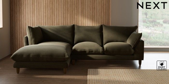 7.2.10 Buy Noa Deep Relaxed Sit Medium Corner Chaise - Left Hand Fine Chenille Easy Clean Dark Moss Green High Leg - Mid from the Seasons online shop Click here to use our website with more accessibility support, for example screen readers