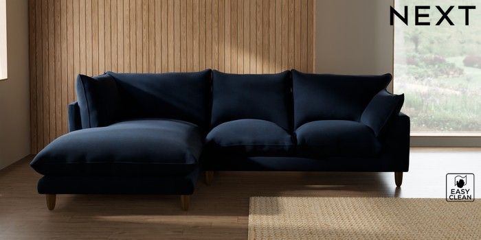 7.2.10 Buy Noa Deep Relaxed Sit Medium Corner Chaise - Left Hand Fine Chenille Easy Clean Dark Navy Blue High Leg - Light from the Seasons online shop Click here to use our website with more accessibility support, for example screen readers