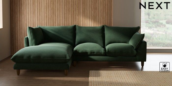 7.2.10 Buy Noa Deep Relaxed Sit Medium Corner Chaise - Left Hand Fine Chenille Easy Clean Mid Khaki Green High Leg - Light from the Seasons online shop Click here to use our website with more accessibility support, for example screen readers