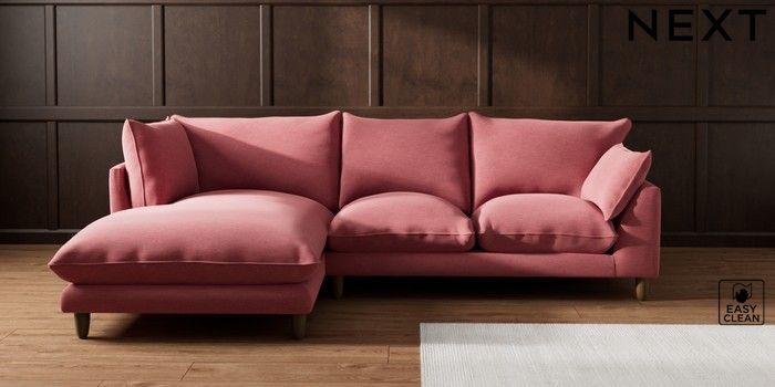 7.2.10 Buy Noa Deep Relaxed Sit Medium Corner Chaise - Left Hand Fine Chenille Easy Clean Mid Pink High Leg - Light from the Seasons online shop Click here to use our website with more accessibility support, for example screen readers