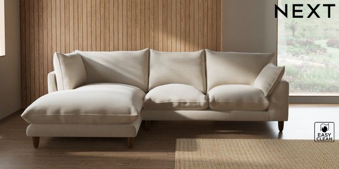 7.2.10 Buy Noa Deep Relaxed Sit Medium Corner Chaise - Left Hand Fine Chenille Easy Clean Oyster High Leg - Light from the Seasons online shop Click here to use our website with more accessibility support, for example screen readers