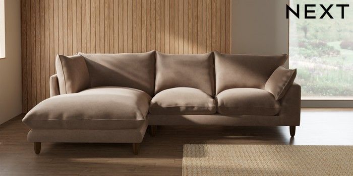 7.2.10 Buy Noa Deep Relaxed Sit Medium Corner Chaise - Left Hand Luxe Chenille Mid Natural High Leg - Dark from the Seasons online shop Click here to use our website with more accessibility support, for example screen readers