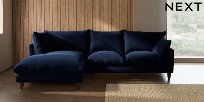 7.2.10 Buy Noa Deep Relaxed Sit Medium Corner Chaise - Left Hand Luxe Chenille Navy Blue High Leg - Dark from the Seasons online shop Click here to use our website with more accessibility support, for example screen readers