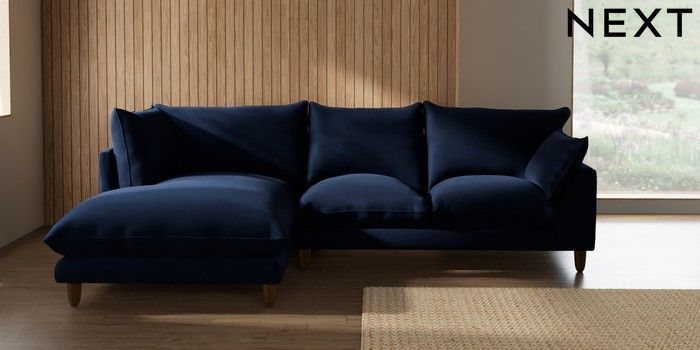 7.2.10 Buy Noa Deep Relaxed Sit Medium Corner Chaise - Left Hand Luxe Chenille Navy Blue High Leg - Light from the Seasons online shop Click here to use our website with more accessibility support, for example screen readers