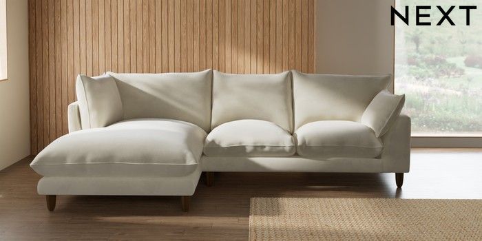 7.2.10 Buy Noa Deep Relaxed Sit Medium Corner Chaise - Left Hand Luxe Chenille Oyster High Leg - Light from the Seasons online shop Click here to use our website with more accessibility support, for example screen readers