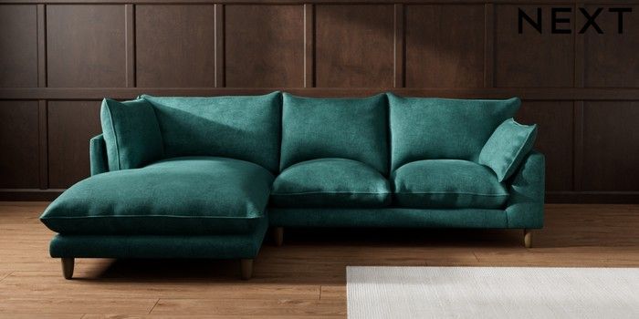 7.2.10 Buy Noa Deep Relaxed Sit Medium Corner Chaise - Left Hand Plush Chenille Dark Teal Green High Leg - Mid from the Seasons online shop Click here to use our website with more accessibility support, for example screen readers