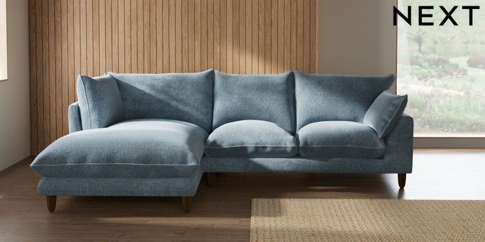 7.2.10 Buy Noa Deep Relaxed Sit Medium Corner Chaise - Left Hand Plush Chenille Light Blue High Leg - Light from the Seasons online shop Click here to use our website with more accessibility support, for example screen readers