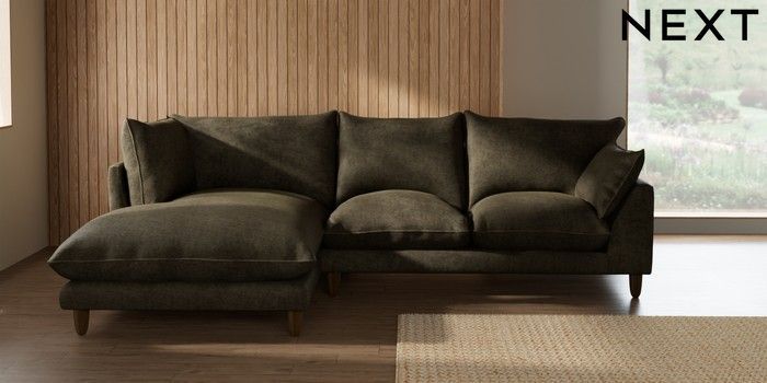 7.2.10 Buy Noa Deep Relaxed Sit Medium Corner Chaise - Left Hand Plush Chenille Moss Green High Leg - Light from the Seasons online shop Click here to use our website with more accessibility support, for example screen readers