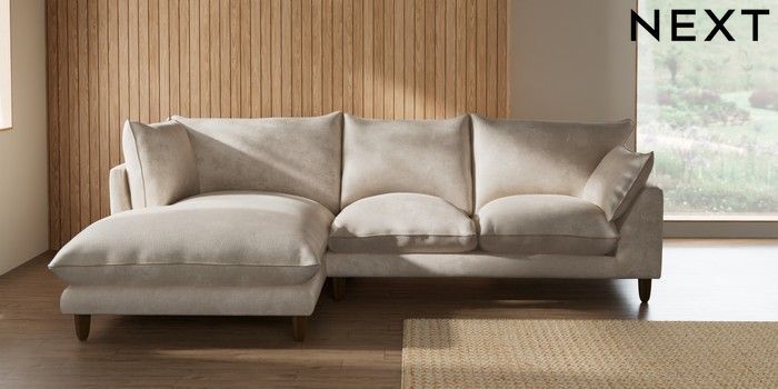 7.2.10 Buy Noa Deep Relaxed Sit Medium Corner Chaise - Left Hand Plush Chenille Oyster High Leg - Mid from the Seasons online shop Click here to use our website with more accessibility support, for example screen readers