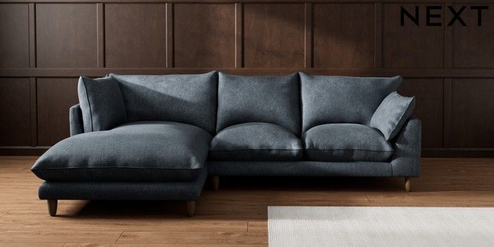 7.2.10 Buy Noa Deep Relaxed Sit Medium Corner Chaise - Left Hand Plush Chenille Slate Blue High Leg - Light from the Seasons online shop Click here to use our website with more accessibility support, for example screen readers