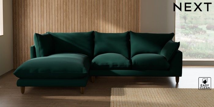 7.3.1 Buy Noa Deep Relaxed Sit Medium Corner Chaise - Left Hand Plush Velvet Easy Clean Bottle Green High Leg - Light from the Seasons online shop Click here to use our website with more accessibility support, for example screen readers