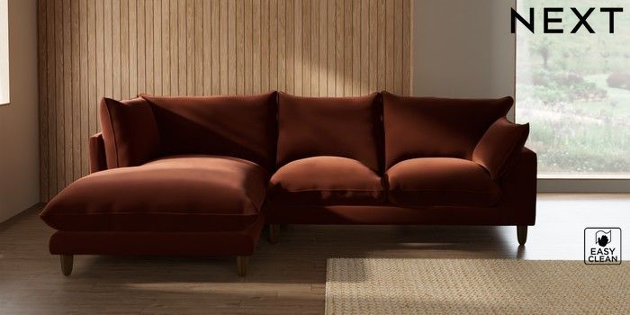 7.3.1 Buy Noa Deep Relaxed Sit Medium Corner Chaise - Left Hand Plush Velvet Easy Clean Ginger Orange High Leg - Light from the Seasons online shop Click here to use our website with more accessibility support, for example screen readers