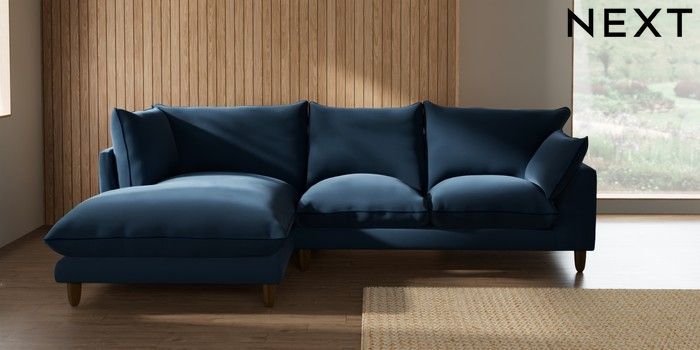 7.3.1 Buy Noa Deep Relaxed Sit Medium Corner Chaise - Left Hand Plush Velvet with Contrast Airforce Blue with Navy Blue High Leg - Light from the Seasons online shop Click here to use our website with more accessibility support, for example screen readers