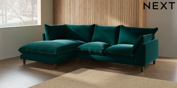 7.3.1 Buy Noa Deep Relaxed Sit Medium Corner Chaise - Left Hand Plush Velvet with Contrast Juniper Grn with Mid Olive Grn High Leg - Light from the Seasons online shop Click here to use our website with more accessibility support, for example screen readers