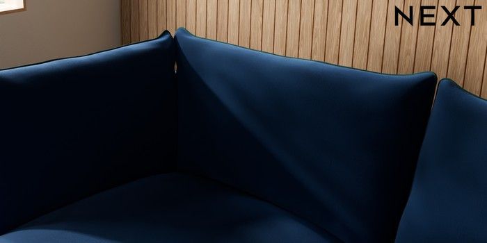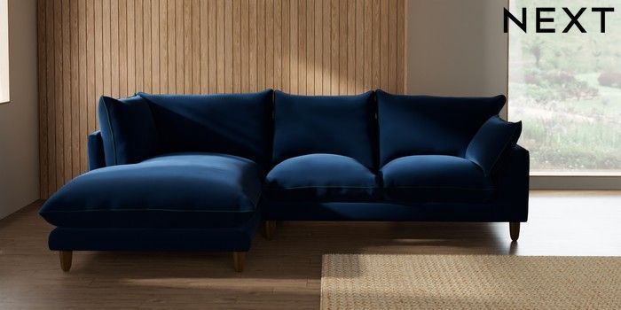 7.3.1 Buy Noa Deep Relaxed Sit Medium Corner Chaise - Left Hand Plush Velvet with Contrast Navy Blue with Bottle Green High Leg - Light from the Seasons online shop Click here to use our website with more accessibility support, for example screen readers