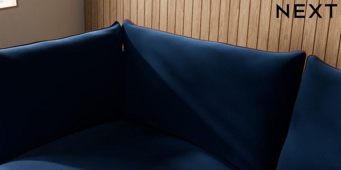 7.3.1 Buy Noa Deep Relaxed Sit Medium Corner Chaise - Left Hand Plush Velvet with Contrast Navy Blue with Ginger Orange High Leg - Dark from the Seasons online shop Click here to use our website with more accessibility support, for example screen readers