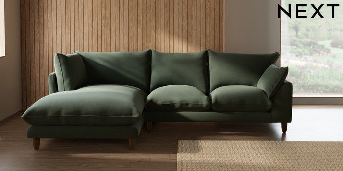 7.3.1 Buy Noa Deep Relaxed Sit Medium Corner Chaise - Left Hand Relaxed Linen Look Dark Green High Leg - Dark from the Seasons online shop Click here to use our website with more accessibility support, for example screen readers