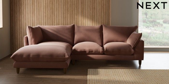 7.2.10 Buy Noa Deep Relaxed Sit Medium Corner Chaise - Left Hand Relaxed Linen Look Light Rust Brown High Leg - Dark from the Seasons online shop Click here to use our website with more accessibility support, for example screen readers