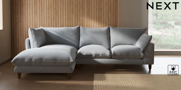 7.2.10 Buy Noa Deep Relaxed Sit Medium Corner Chaise - Left Hand Tweedy Blend Easy Clean Light Silver Grey High Leg - Light from the Seasons online shop Click here to use our website with more accessibility support, for example screen readers