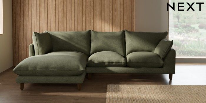 7.2.10 Buy Noa Deep Relaxed Sit Medium Corner Chaise - Left Hand Tweedy Chenille Mid Moss Green High Leg - Light from the Seasons online shop Click here to use our website with more accessibility support, for example screen readers